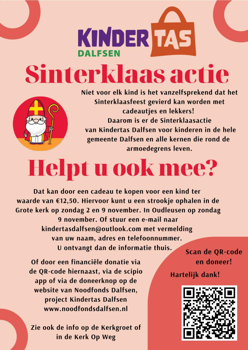 Ook dit jaar organiseert Kindertas Dalfsen in samenwerking met de diaconie de Sinterklaasactie voor kinderen in de gemeente Dalfsen die rond de armoedegrens leven Lees meer